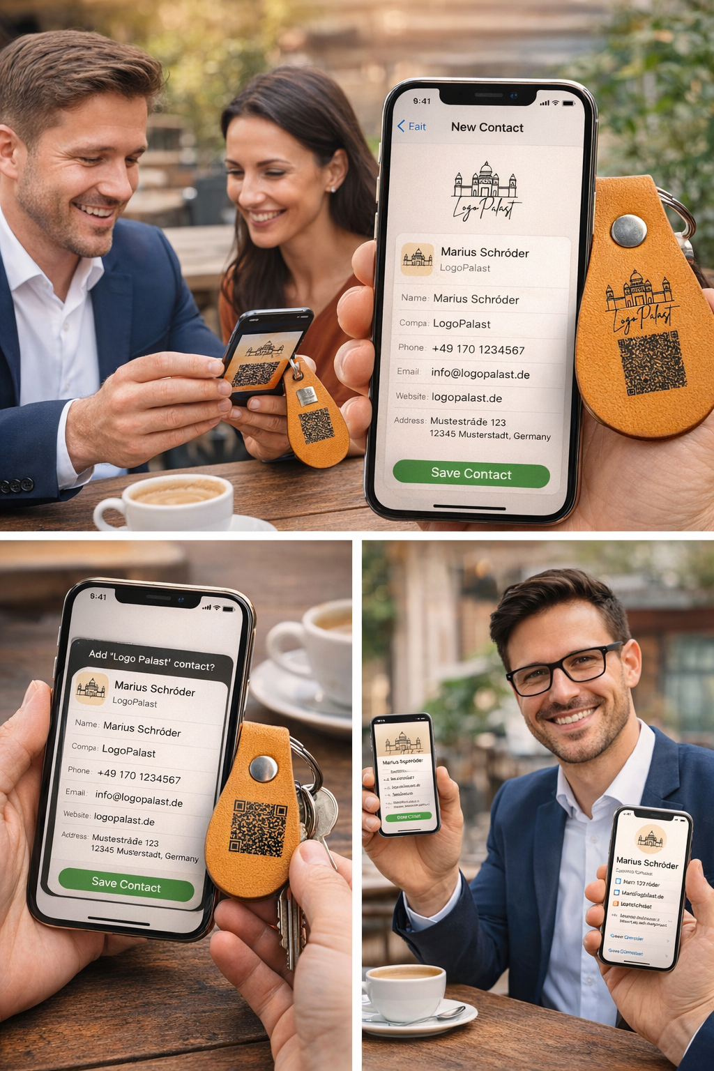 • Kontakt teilen in Sekunden (QR Code scannen → speichern)